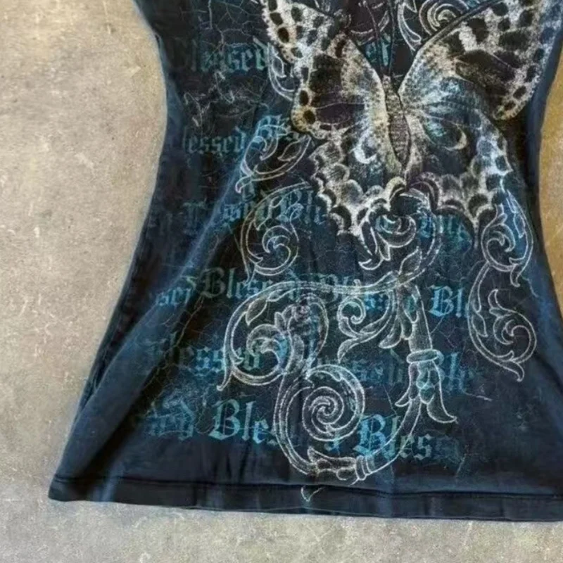 Harajuku Fairy Cropped Butterfly Printing T Shirts Vintage Grunge Streetwear Tops Women Summer Y2k Aesthetic Casual Crop Tshirts